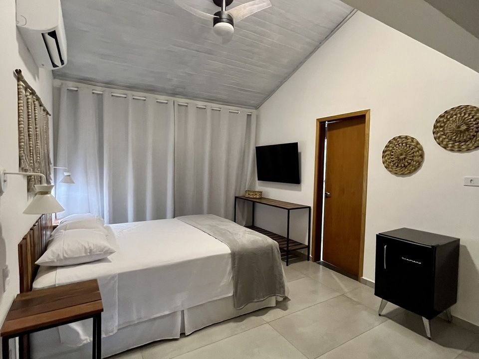 A Suíte Ilha Mar fica no andar superior de frente para o jardim e com uma vista espetacular para o mar, possui uma varanda espaçosa com 2 cadeiras, uma rede de descanso, cama queen size, guarda-roupa, roupas de cama e banho novas, ar-condicionado, ventilador de teto, frigobar, guarda-roupas e smart Tv de 50", tudo isso e muito mais para proporcionar dias incríveis!